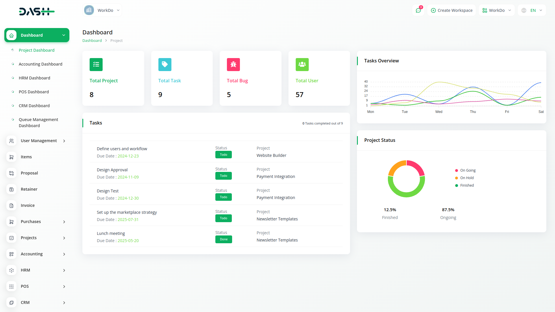 A project can assign its task and bug to its team. A task overview and visual representation of project status can help you estimate progress on each task. Finally, you can check the top fixed function.