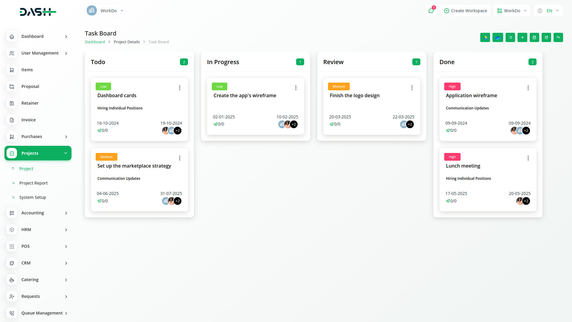Project tasks can be replaced by the Kanban drag system. Get a better visual overview of all your projects, tasks and assigned team members. Increase team productivity.